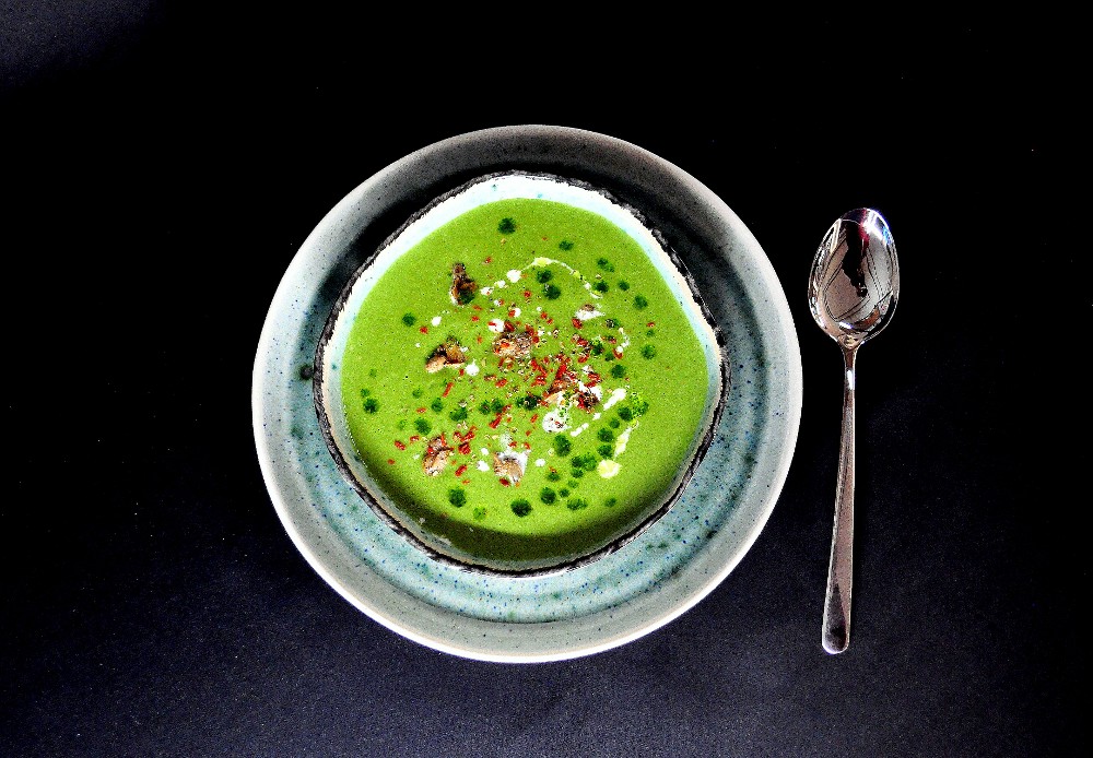 Шпинатний крем суп з равликами